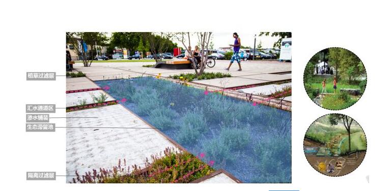 為了控制路面帶來(lái)的樹葉、垃圾、油類和懸浮固體等污染物,可以在雨水口和雨水井設(shè)置截污掛籃和專用編織袋等,或設(shè)計(jì)專門的浮渣隔離、沉淀截污井。也可設(shè)計(jì)綠地緩沖帶來(lái)截留凈化路面徑流污染物,但必須考慮對(duì)地下水的潛在威脅,限用于污染較輕的徑流,如生活小區(qū)、公園的路面雨水。設(shè)計(jì)特殊裝置分離污染較重的初期徑流,保護(hù)后續(xù)滲透設(shè)施和收集利用系統(tǒng)的正常運(yùn)行。